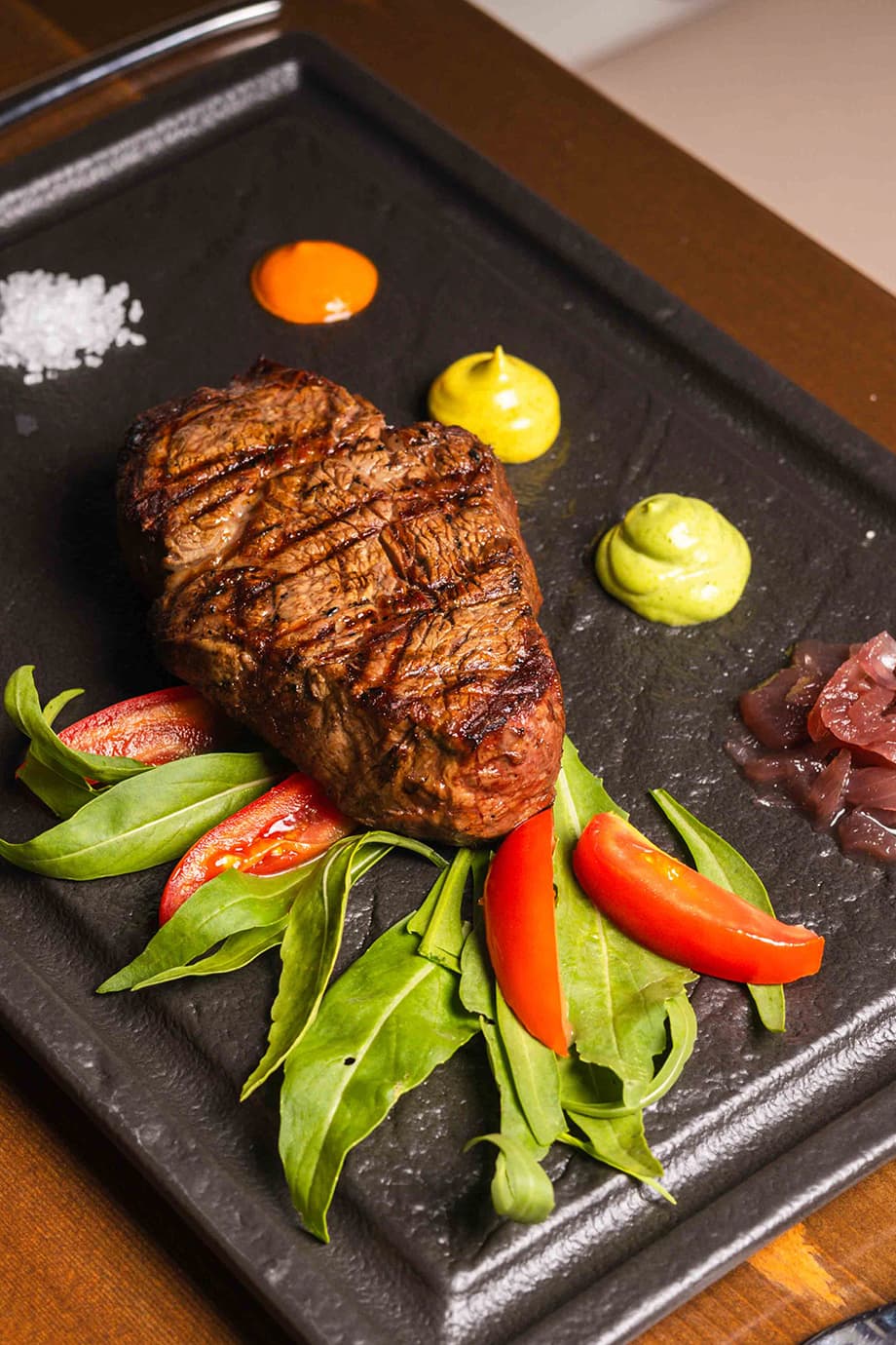 Our passion for quality extends to our meat selection. As a specialized steak house, we take pride in our dedicated aging cell where premium cuts are carefully matured to perfection. This time-honored process enhances tenderness and develops the deep, rich flavors that discerning meat lovers seek. Our menu features an extensive selection of aged meats, from classic cuts to rare finds. Every steak that leaves our kitchen represents our commitment to the art of grilling and the pursuit of culinary excellence.
